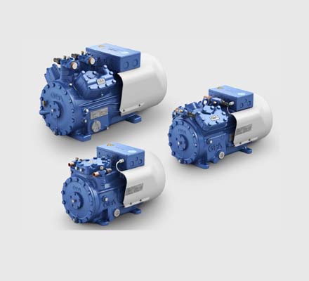 Suction gas-cooled HG and air-cooled HA compressors offer a full capacity range of innovative, modern compressor technology with 2, 4, 6 and 8 cylinders. Suitable for all current refrigerants, as well as CO2. For the EX range, GEA is the first European manufacturer to offer compressors certified according to ATEX machinery category 2.